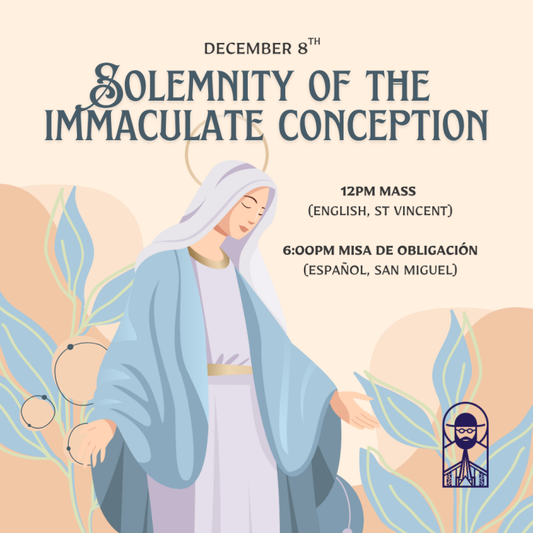 Mass Schedule Monday to Friday: 12:00pm St Vincent Saturday: 4:00pm St Vincent Sunday: 8:30am St Vincent, Spanish Sunday: 10:30am St Vincent Sunday: 12:00pm St Michael, Spanish Sunday: 7:00pm St Vincent, Spanish Confessions Monday to Friday 11:15am to 11:45am St Vincent Friday - Mercy Nights 5:30pm to 7:30pm St Vincent Adoration and Confession Please note that while we strive to maintain our regular schedule for the Sacrament of Reconciliation, there may be occasional changes. For Monday and Thursday: If one of our priests is unavailable due to other commitments, and it coincides with the designated day off for the other priest, confessions may be canceled for that day. We apologize for any inconvenience this may cause and appreciate your understanding. For updated schedules or urgent spiritual needs, please contact the parish office. |