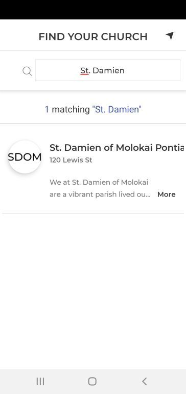 5. Search for "St. Damien of Molokai Parish" or type in the parish code "CJ403".