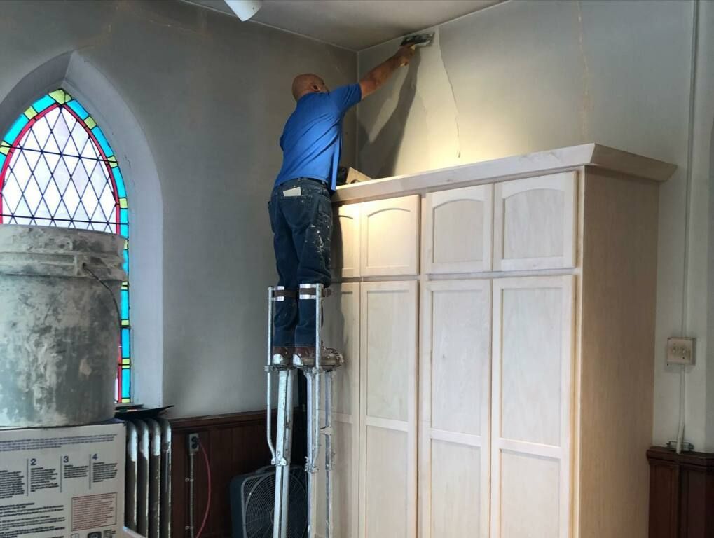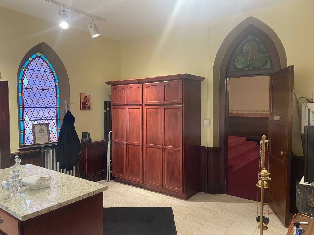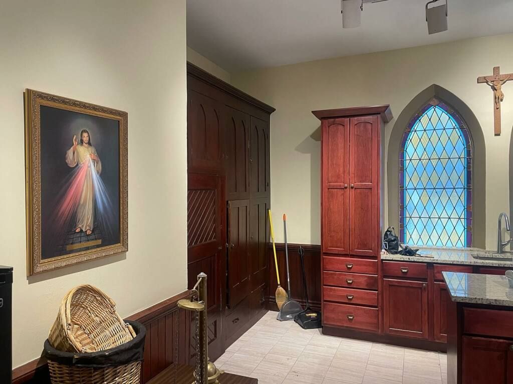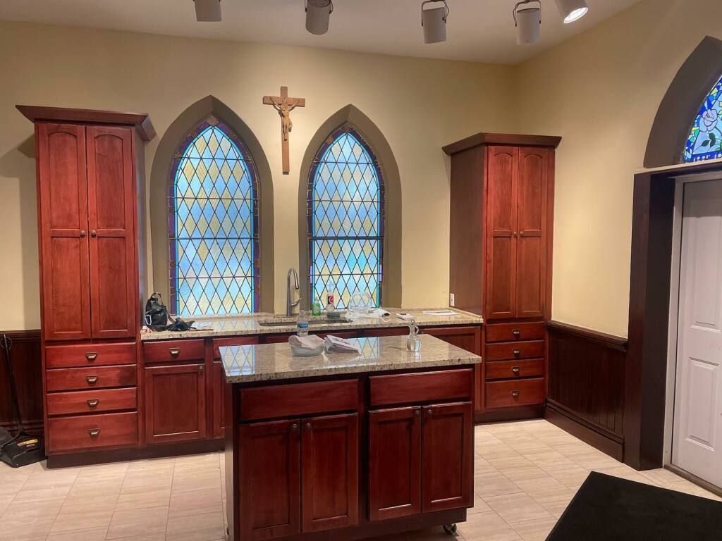 The old chapel was reconditioned. New floors were installed, and cabinets, and repainted to be used as a Sacristy and Altar servers space.