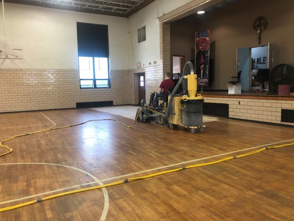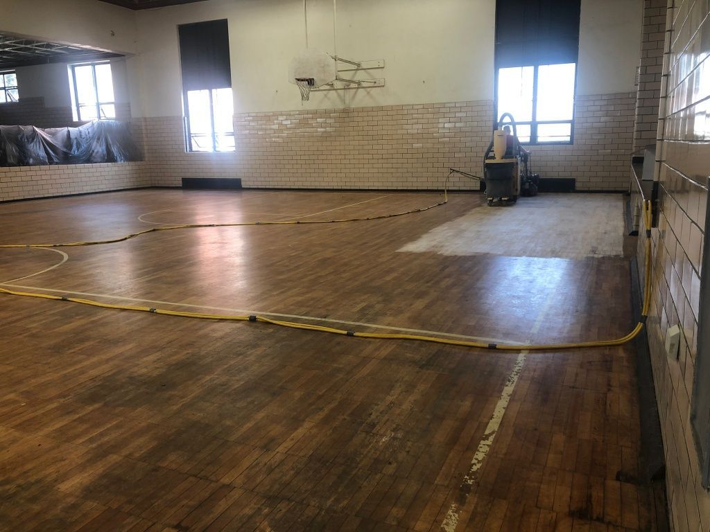 The Gymnasium floor was refinished and repainted.