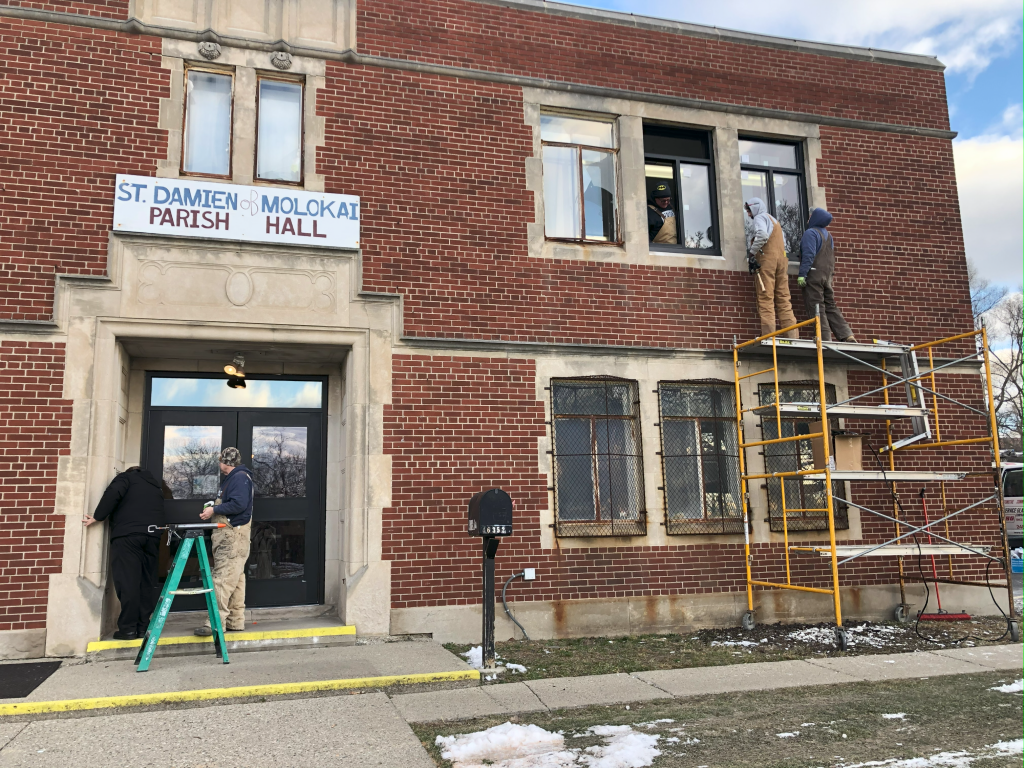 All Gymnasium offices windows first and second floor have been replaced with commercial aluminum windows. The gymnasium's main double door was replaced.