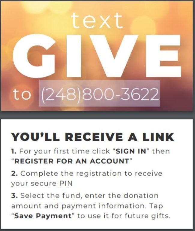 Our parish now provides the opportunity to text to donate on line, or to pay for your Religious Education Registration. It is simple, and safe.